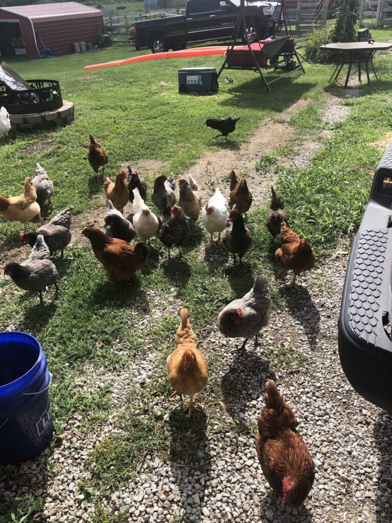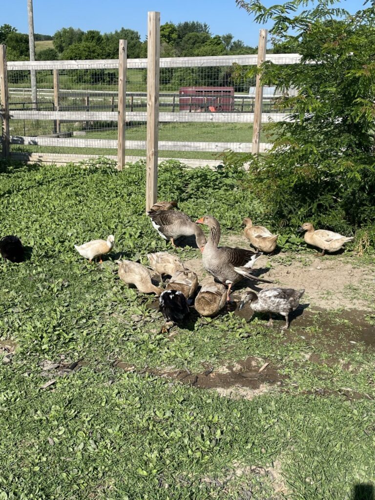 Meet our feathery friends! We have a variety of chickens, ducks and two geese on our farm. They are surprising delightful to work with. Their anticks make us laugh often. We have one duck who has taken to following me around as I rinse and refill the duck “ponds”- little swimming pools. Her objective is finding extra worms or spiders or bugs that may be cooling off under the pools. Her name has become Fisher in honor of her fishing for worms every morning. She is a highlight of my morning. Most of our chickens and ducks do not like to be held but will follow us everywhere around their yard. They have a good size yard to explore but do not get to explore the pasture as we have coyotes that have taken off with a few. So, to protect them, they have an enclosed yard that they happily scratch, peek and dig for whatever delicious morsels they can find. Occasionally, they flap up and over the fence to the front yard to graciously help me till up my flower gardens in search for something yummy. If only they would till up just the weeds and not the flowers!